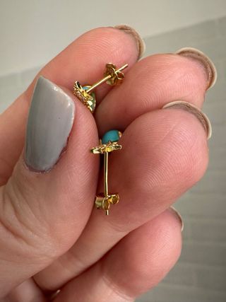 non faccio scambi Eleganti orecchini pendenti con una pietra di turchese centrale e un dettaglio a forma di stella. - Montatura in oro vermeil (argento 925 placcato oro 18K) - turchese - Dettaglio a forma di stella con zirconi. mai indossati