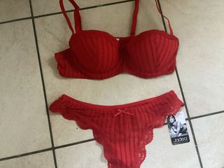 Bellissimo completo intimo Jadea, perfetto per un tocco di colore. - Tessuto a righe con glitter. - Dettagli in pizzo sul perizoma. - Fiocco decorativo sul davanti del perizoma.