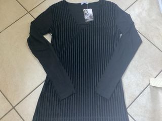 Maglia a maniche lunghe con un design a coste verticali sul davanti. - Tessuto morbido e confortevole. - Scollo a V. - Dettaglio a coste verticali.