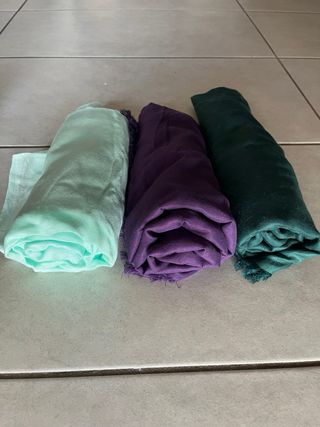 Set di tre hijab in colori diversi. misure cm100x140 - Un hijab verde menta. - Un hijab viola. - Un hijab verde scuro.