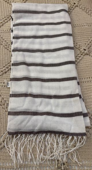Sciarpa foulard bianca con frange e una striscia azzurra