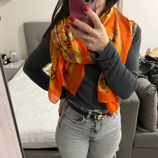 Bellissimo foulard di Hermès, un vero pezzo da collezione! Eccone i dettagli: - Motivo elegante e ricco di colori. - Perfetto per aggiungere un tocco di classe a qualsiasi outfit.