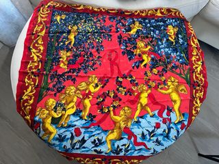 Foulard rosso con le illustrazioni dei luoghi più famosi di Vienna. Il foulard ha il bordo perfetto e non sfilacciato. Purtroppo sono presenti alcuni piccoli buchi, non si notano molto quando indossato (vedi ultima foto). Il foulard misura cm.68x69 Materiale: 100% Acetato Made in Italy MAI USATO, IN OTTIME CONDIZIONI, NESSUN FILO TIRATO E NESSUNA SFILACCIATURA. A PARTE I PICCOLI BUCHI SEGNALATI, E' PERFETTO.
