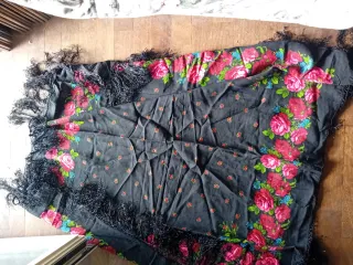 Foulard nero con rose rosse e frange