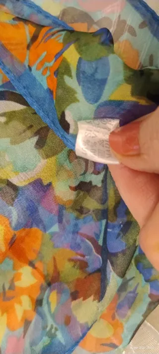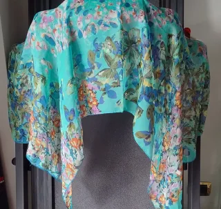 Elegante foulard di grandi dimensioni ( m.1,36x 2.88)con una vivace stampa floreale e farfalle - uso stola o copricostume - Composizione in misto seta (40 seta e 60 poliestere)per una sensazione di lusso. - Design con motivi floreali colorati su sfondo turchese,verde, azzurro.