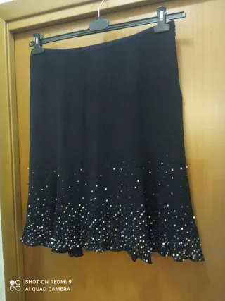 Gonna elegante in seta nera, perfetta per occasioni speciali. Il fondo è impreziosito da paillettes che creano un effetto scintillante. - Tessuto in seta - Dettagli con paillettes dorate e argentate eccellente stato ritiro a mano zona Frascati
