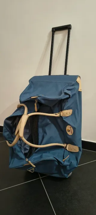 Borsone trolley Roncato blu e beige con tracolla