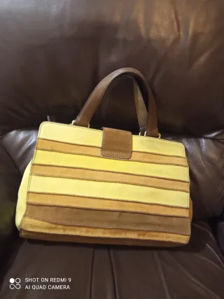 Borsa Maliparmi nuova in camoscio, con un design a strisce orizzontali. - Materiale: camoscio - Colori: varie tonalità di marrone e giallo - Chiusura con patta e gancio metallico . Ritiro a mano zona Frascati