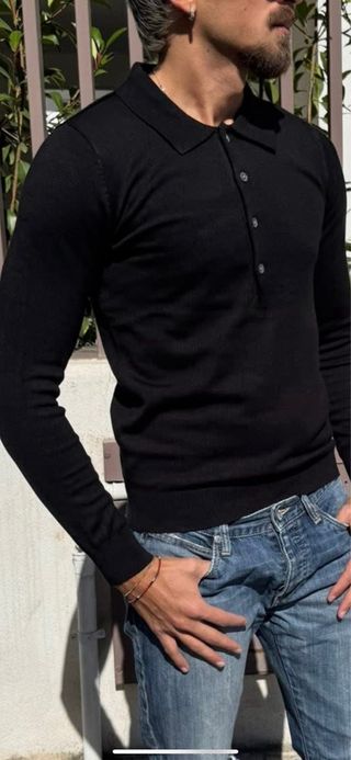 Maglioncino nero a maniche lunghe, perfetto per le giornate più fresche. - Dettaglio con bottoni sul collo. - Tessuto caldo e confortevole.