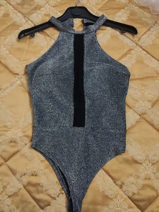 Maglia body top donna lurex argento laminato XXXL coppe preformate Interne abbottonatura sotto indossato 1 volta sola in ottime condizioni.