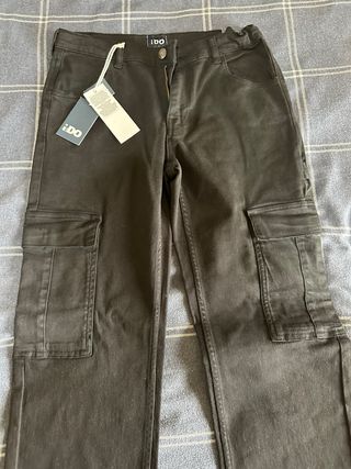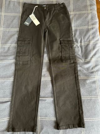 Jeans cargo neri da bambino. - Tasche laterali. - Vita elasticizzata.
