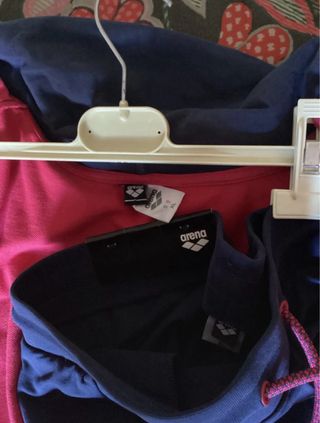 Tuta sportiva Arena, mai indossata e in perfette condizioni. - Giacca con zip frontale e cappuccio. - Pantaloni con coulisse in vita.