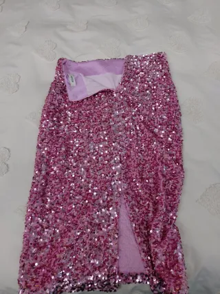 Gonna Dixie corta al ginocchio, con paillettes rosa. Perfetta per un look scintillante. - Tessuto principale: 92% poliestere, 8% elastan. - Taglia S.