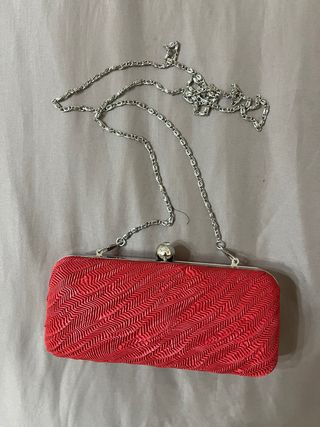 Elegante pochette da donna, perfetta per completare il tuo outfit. - Tessuto con motivo a zig-zag. - Chiusura a scatto con dettaglio sferico. - Catena metallica argentata rimovibile.