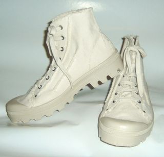 Stivaletti casual in tela grezza color deserto n.41 unisex con soletta interna estraibile in iuta, suola in gomma, mai indossati. Unisex. Made in Italy - Materiale: Tela grezza - Design: Stivaletti con lacci