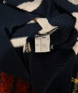 Maglioncino lavorato a mano con un design unico e un tocco vintage. Il suo taglio oversize lo rende comodo e alla moda. Modello corto e largo. Presenza di aloni sul collo ma impercettibili anche quando è indossato. Presenza di pilling. Molto usato. Vendo ad un prezzo simbolico perché può essere riutilizzato - Maglia a trecce. - Maniche lunghe. - Scollo rotondo.