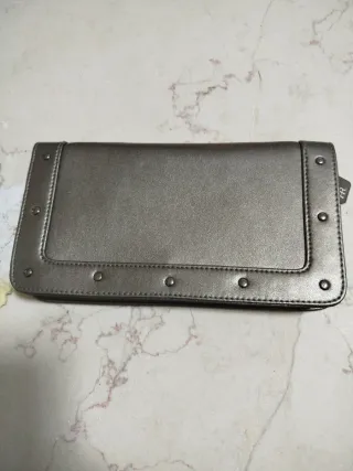 Elegante portafoglio Helena Rubinstein. - Design con borchie decorative. - Finitura metallica. - Chiusura con cerniera e vari scomparti all'interno