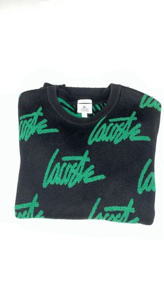 Felpa con un design audace e distintivo, perfetta per aggiungere un tocco di stile al tuo guardaroba. - Fantasia logo Lacoste all-over. - Colore principale nero con dettagli verdi. - Girocollo classico.