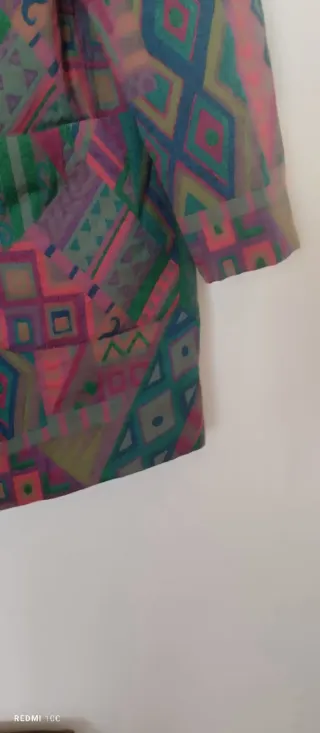 Giacca da donna con una fantasia geometrica vivace. - Maniche lunghe. - Chiusura con bottoni. - Tasche frontali applicate.