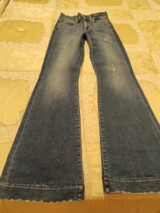 Jeans Liu Jo a vita alta, modello flare. - Tessuto denim. - Effetto sbiadito. - Fondo a zampa. - Decorazioni con punti luce sulle tasche posteriori. - Indossati in un paio di occasioni, ancora perfetti. - Modello ancora presente in collezione. - Per informazioni, chiedete senza problemi.