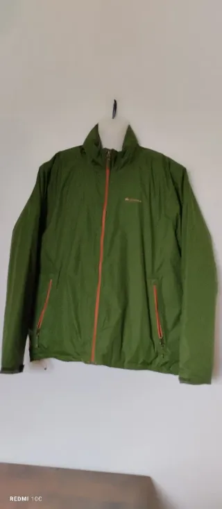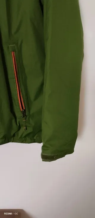 Giubbotto da uomo di colore verde. Spalle 48 cm Lunghezza 72 cm - Zip frontale arancione. - Tasche laterali con zip arancione. - Logo sul petto.