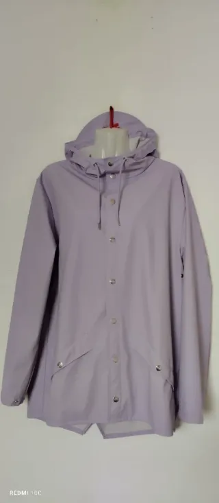 Impermeabile Rains dal design moderno e funzionale. Perfetto per proteggersi dalla pioggia con stile. - Spalle 46 cm Lunghezza 72 cm - Cappuccio con coulisse. - Chiusura frontale con bottoni a pressione. - Tasche laterali con patta e bottone. - Orlo posteriore leggermente più lungo con spacchi laterali.