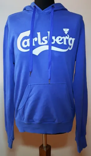 Felpa Carlsberg taglia L (misure nell'ultima foto) colore azzurro, Logo frontale ben definito Modello con cappuccio e tasca a marsupio