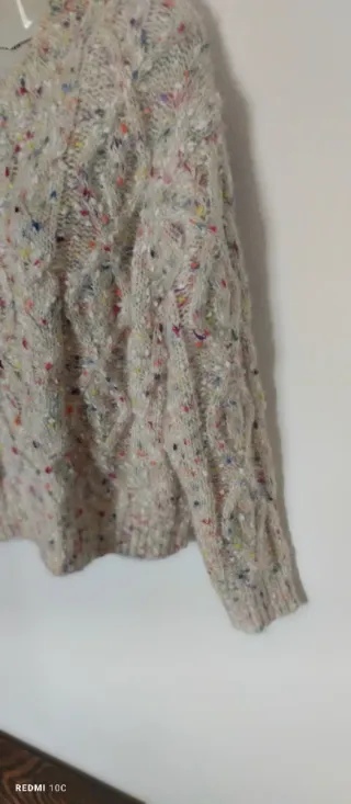 Maglione da donna con scollo rotondo e trama a trecce. Il filato presenta delle piccole inclusioni colorate che aggiungono un tocco di vivacità. - Misto Lana - Design a trecce. - Filato mélange.