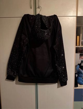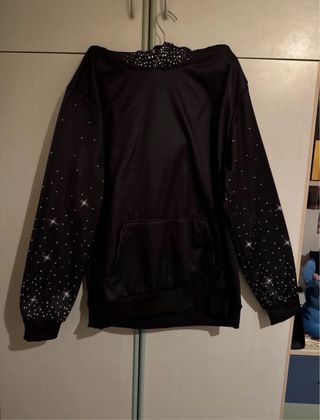 Felpa con un design unico e scintillante. Perfetta per aggiungere un tocco di originalità al tuo guardaroba. - Dettagli con stelle e brillantini disegnati sul cappuccio e sulle maniche. - Tasca frontale a marsupio.