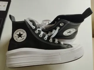 Scarpe alte Converse da donna in pelle nera con dettagli bianchi e suola platform. - Logo Converse Chuck Taylor All Star sul lato. - Lacci bianchi. - Suola spessa bianca.