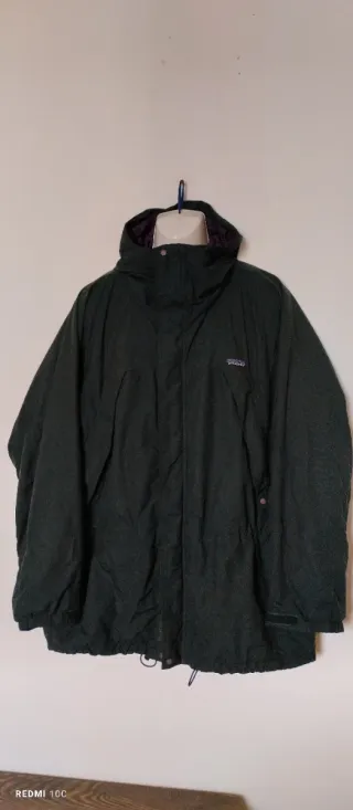 Giacca a vento Patagonia in un bel colore verde oliva. Veste una taglia in più Spalle 52 cm Lunghezza 80 cm esterno in nylon interno poliestere. - Cappuccio integrato. - Chiusura frontale con zip. - Tasche laterali. - Coulisse in vita per regolare la vestibilità.