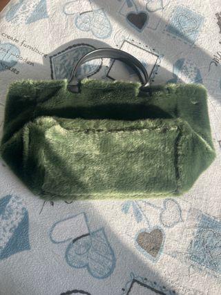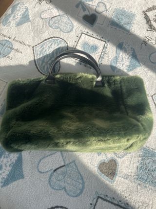Borsa in pelle e pelliccia sintetica verde