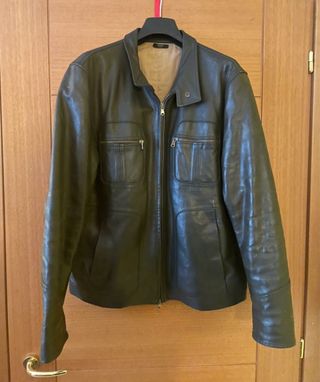 Giacca artigianale in vera pelle. - Design classico con chiusura a zip. - Due tasche sul petto con patta e zip. - Due tasche laterali. - Collo alla coreana.