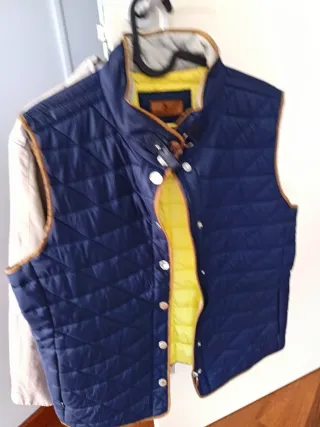Vendo 2 giacche usate e regalo una terza perché non sono in buone condizioni. 1 giacca nera con cappuccio in pelo marca Blue & Blouze, cappuccio rimovibile con cerniera, 2 tasche interne, una su ciascun lato, taglia L (in buone condizioni). 1 giacca grigio bluastra più sottile ma con fodera in pile marca Jhon Smith, taglia XL, ma portata da un ragazzo di taglia L (buone condizioni, ma leggermente meno della nera). 1 giacca regalo Pull&Bear in condizioni che la rendono adatta per il lavoro e per sporcarsi, o per andare in campagna con i cani, ecc. La regalo perché non la vedo come adatta per la vendita a causa di un piccolo buco e qualche piccola macchia, qualche pelo (ultima foto).