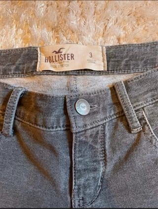 Giacche della marca Hollister in colore grigio. Design aderente. Cintura con chiusura a bottone e cerniera. Tiro basso