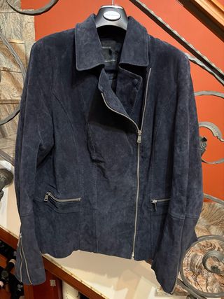 Giacca Chiodo Pelle Scamosciata Blu Donna