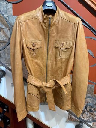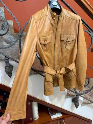 Elegante giacca in vera pelle, un capo vintage dal fascino intramontabile. Molto bella con inizio di invecchiamento naturale della pelle, che la rende ancor più bella con sfumature di colore sulla pelle che la rendono particolarmente bella, la taglia c’è foto etichetta . ottimo rapporto qualità prezzo - Design con cintura in vita per un look definito. - Dettagli con tasche frontali e bottoni. - Texture a microfori su alcune sezioni per un tocco di stile.