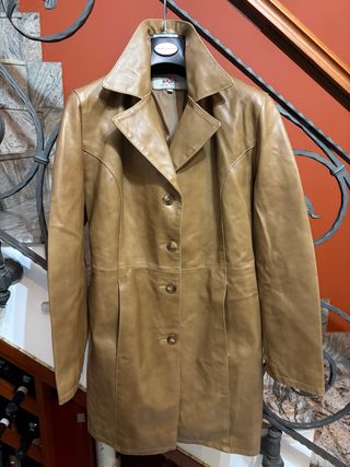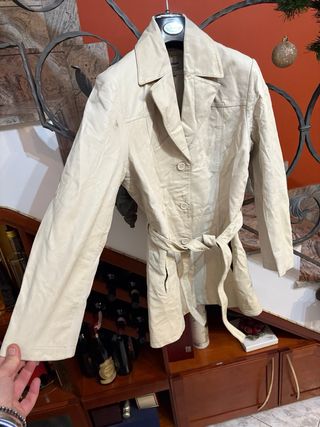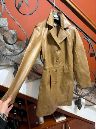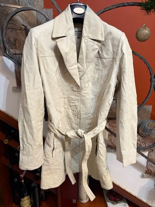 Elegante giacca/trench da donna in vera pelle, un capo iconico degli anni '90. Perfetto per aggiungere un tocco retrò al tuo guardaroba. Ben tenuta non ha strappi né buchi né tagli, fodera interna integra, solo qualche macchiolina sulla manica destra avanti e dietro spalla come evidenziato in foto, essendo un colore chiaro, però non ha difetti, usura del suo tempo, abbastanza usato ma ben conservato, la taglia è una 44 come da foto etichetta. Ottimo rapporto qualità prezzo. Tieni presente che sono capi vintage possono avere segni naturali del tempo - Vera pelle - Design vintage anni '90 - Cintura in vita per un fit personalizzato