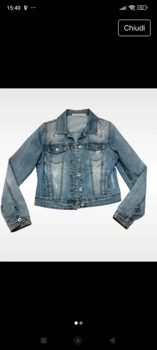 Giubbino in denim da donna, dal taglio avvitato. - Dettagli strappati e usurati. - Chiusura con bottoni. - Tasche sul petto. - Polsini con bottoni.