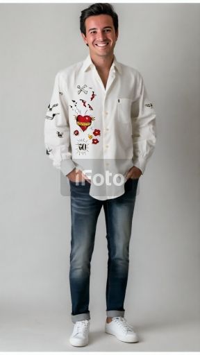 Bellissima camicia da uomo SIXTY, vintage anni '80, taglia L. Una chicca per veri intenditori! - Modello a maniche lunghe. - Dettagli unici con stampa a tema tattoo. - Perfetta per un look originale e di carattere.