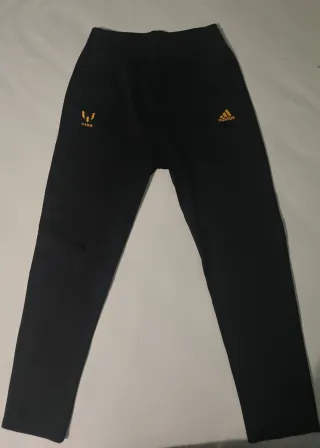 Pantaloni sportivi ORIGINALI Adidas x Messi, in ottime condizioni (pari al nuovo). Colore nero con loghi Messi e Adidas in giallo/oro. Tecnologia AEROREADY, tessuto tecnico traspirante ideale per allenamento, calcio o uso quotidiano. Vestibilità comoda, elastico in vita, tasche laterali. Scritta decorativa sulla gamba destra. 📏 Taglia: 13-14 anni / 164 cm (vestono anche come XS adulto) 💯 Condizioni: usato categoria A – nessun difetto visibile 🔥 Prezzo nuovo: circa 70-90 € Perfetti per chi ama lo stile sportivo e il mondo Messi.