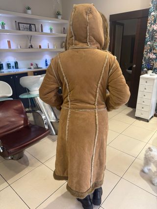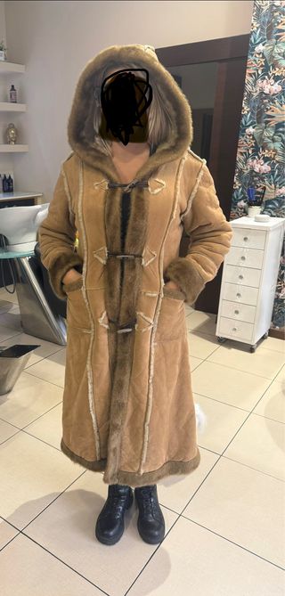 Elegante cappotto lungo da donna, perfetto per le giornate più fredde. Un capo versatile che aggiunge un tocco di stile. - Design con cappuccio bordato in pelliccia. - Chiusura con alamari e bottoni. - Dettagli in pelliccia sui polsini e lungo la chiusura.