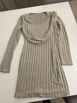 Vestito lungo a maniche lunghe con scollo rotondo. - Tessuto a costine. - Maniche lunghe. - Lunghezza al ginocchio.