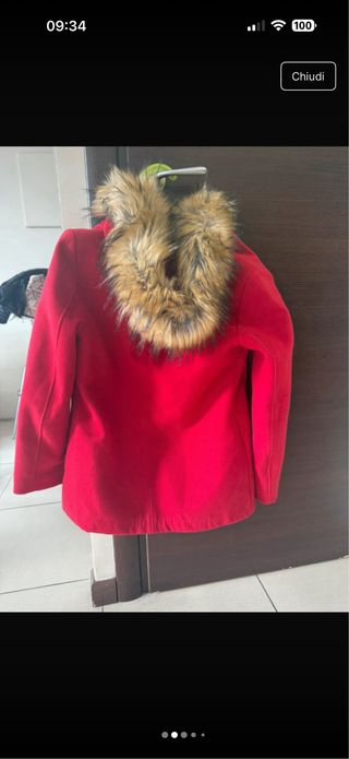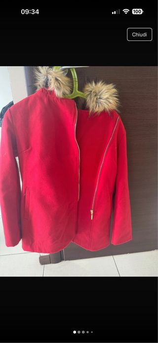 Elegante cappotto da donna, perfetto per le giornate più fredde. - Dettaglio con pelliccia sintetica sul cappuccio. - Chiusura asimmetrica con zip dorata. - Design moderno e alla moda.