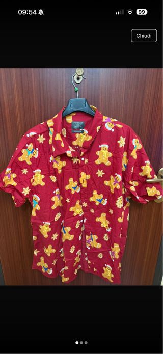 Camicia a maniche corte con divertente stampa a tema natalizio. - Fantasia con omini di pan di zenzero e fiocchi di neve. - Colletto classico. - Chiusura con bottoni.