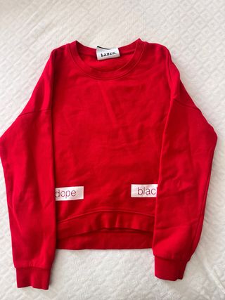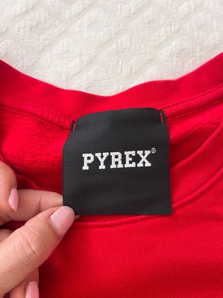 Felpa girocollo Pyrex di un vivace colore rosso. Presenta due etichette applicate sul davanti con le scritte dope e black. - Girocollo - Maniche lunghe - Polsini e fondo a costine