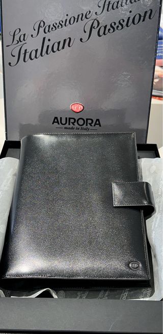 Elegante organizer in pelle nera, un accessorio di stile e praticità. - Design classico e raffinato. - Chiusura con linguetta. - Logo inciso sul fronte.