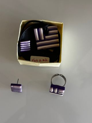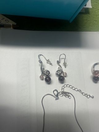 Set di gioielleria artigianale. - Collana con ciondolo. - Anello regolabile. - Orecchini abbinati.