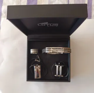 Set di accessori di gioielleria del marchio Lotus. Include un anello, una braccialetto, due ciondoli con cordino. In omaggio una confezione regalo.