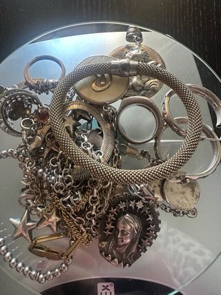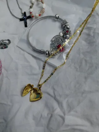 Set di vari gioielli. Include collane, bracciali e orecchini. Design vari con dettagli. Chiusura a moschettone su alcuni pezzi. Alcuni pezzi con decorazioni di croci e cuori. In argento e acciaio. Venduto tutto insieme.